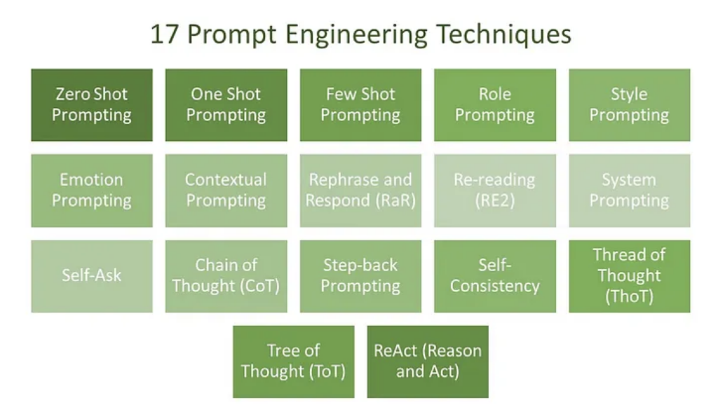 Przyjrzyjmy się 17 technikom inżynierii podpowiedzi, przedstawionym na grafice, którą załączyliście, i omówmy je w kontekście pracy doktoranta:
