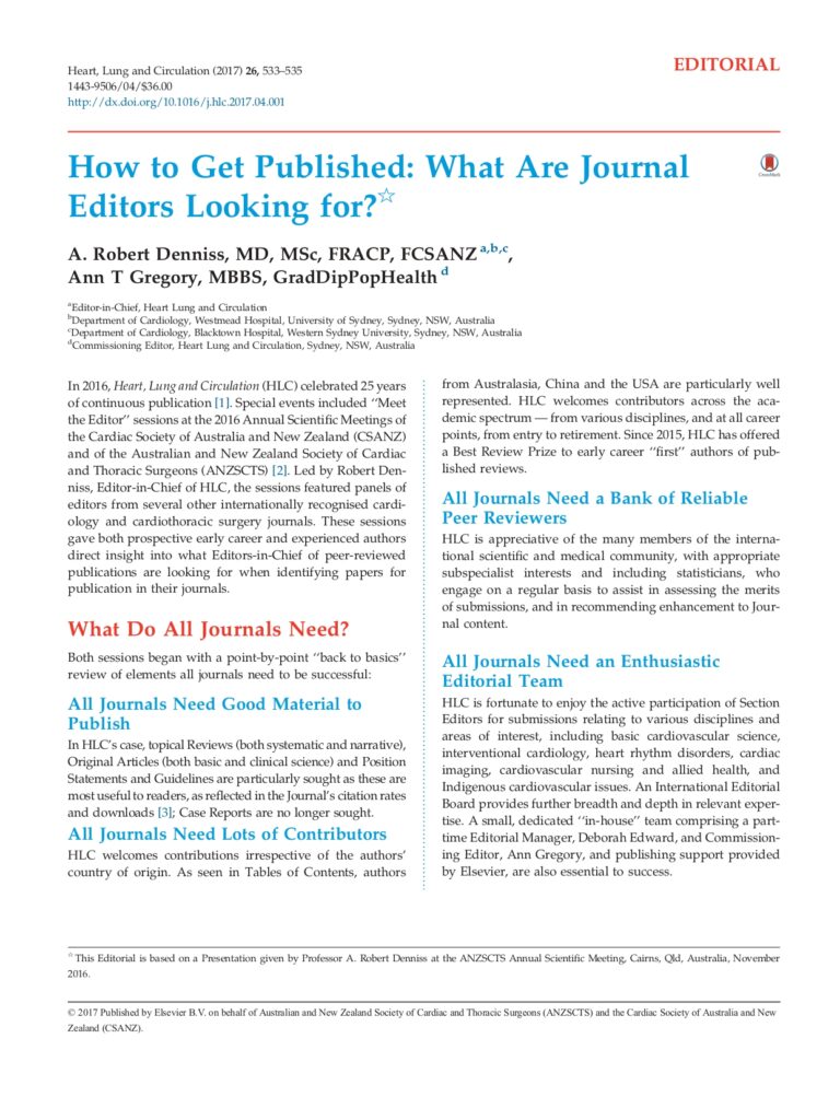 Artykuł redakcyjny w Heart, Lung and Circulation jasno pokazuje, co liczy się przy ocenie manuskryptów: