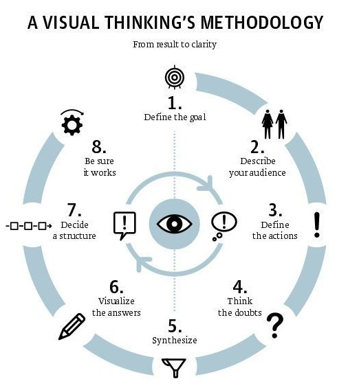 Praca nad rozprawą doktorską (lub innym projektem badawczym) może generować ogromną liczbę danych, pomysłów i informacji do przetworzenia. Często brakuje nam narzędzi pozwalających „zobaczyć” całość projektu jak na dłoni. Tu wkracza metodologia Visual Thinking – sposób strukturyzowania myśli i analizowania problemów za pomocą form wizualnych (map, diagramów, infografik). W poniższym artykule przedstawię ośmioetapowy cykl (oparty na ilustracji „A Visual Thinking’s Methodology”), który może pomóc Ci w skutecznej organizacji badań i komunikacji wyników.